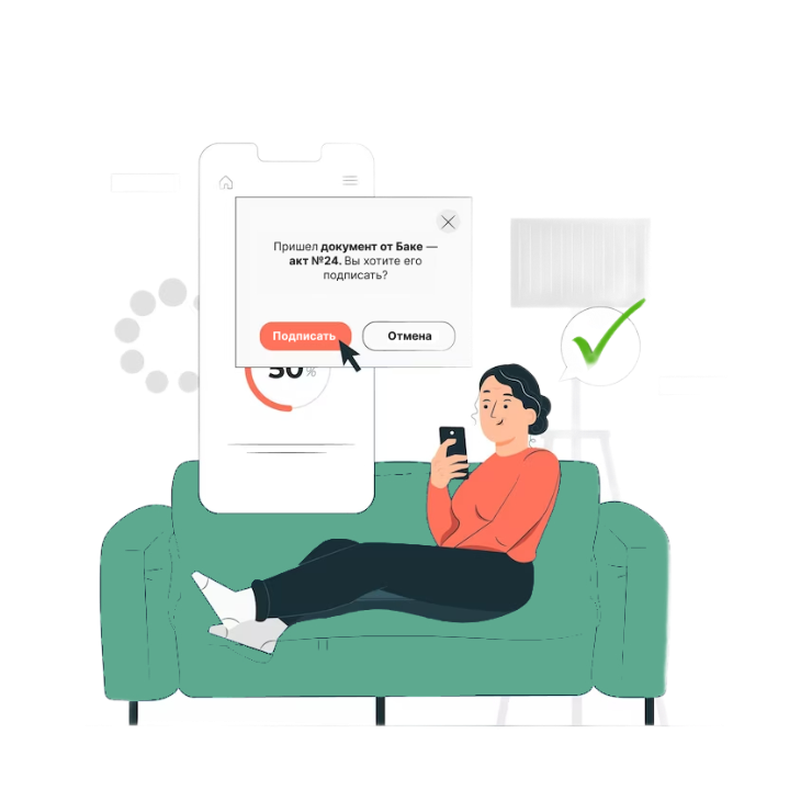 Клиент за 2 минуты подписывает ваш документ с помощью ЭЦП, со смартфона